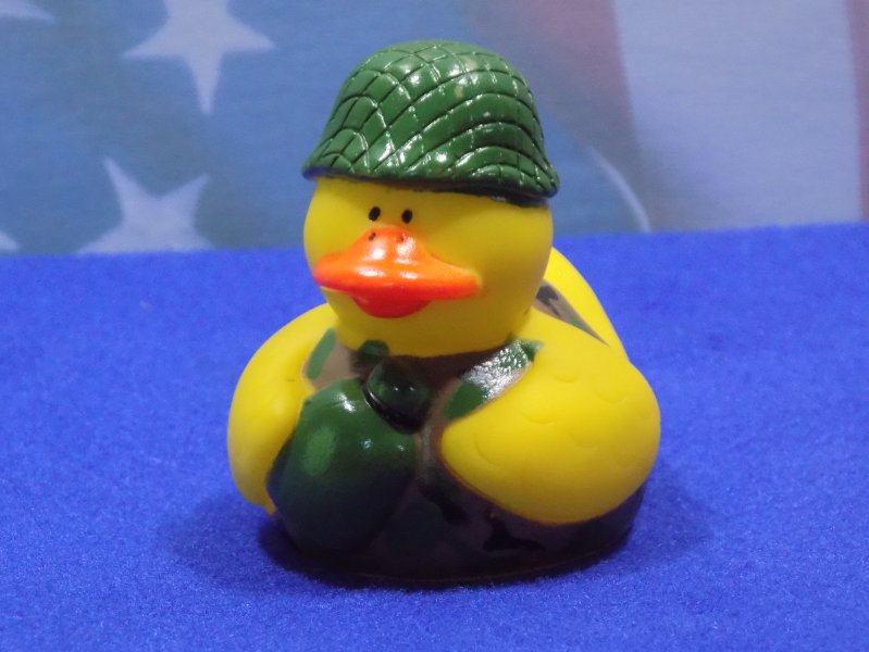 BUY 5, GET 1 FREE CAMO RUBBER DUCKIE with SQUEEK!! 2" DIAMETER X 2 1/2" HIGH...